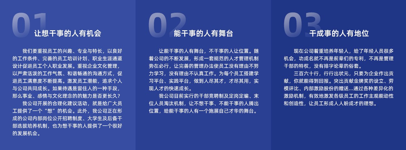 “運籌帷幄之中,決勝于千里之外,吾不如子房;安國家,撫百姓、給餉銀,不絕糧道,吾不如蕭何;統(tǒng)百萬之軍,戰(zhàn)必勝,攻必取,吾不如韓信。此三者,皆人杰也。吾能用之,所以取天下也!”出色的員工才會讓企業(yè)更卓越。我們要打破資歷、年齡、學(xué)歷、性別、地域的界限,形成不拘一格,人盡其才的用人局面。