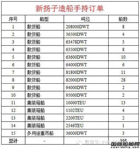 據(jù)國際船舶網(wǎng)了解,揚子江船業(yè)2014年全年的新船訂單為41艘,訂單總額共計18億美元。此外,包括2艘10000TEU集裝箱船、2艘35000DWT散貨船和2艘2700TEU集裝箱船備選訂單延遲至2015年。