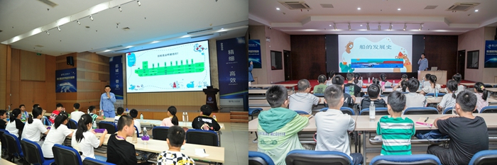 公司組織安排了“船人課堂”,為孩子更好地揭秘、解惑:新?lián)P子造船焊接工藝科科長(cháng)錢(qián)曉強、揚子鑫福造船檢驗科張磊科長(cháng)、分段車(chē)間姜海軍分別為孩子們上了一節《萬(wàn)噸巨輪大揭秘》課程。老師們運用視頻展播、課堂實(shí)驗等直觀(guān)的體驗,深入淺出地揭開(kāi)大船的奧秘,為孩子們帶來(lái)了一堂生動(dòng)的船舶知識普及課,孩子們積極互動(dòng)、主動(dòng)回答。靖江實(shí)驗學(xué)校孫老師給孩子們帶來(lái)一堂生動(dòng)有趣的趣味英語(yǔ)課堂《Home is best!》,讓孩子們感受到了課堂之外英語(yǔ)的獨特魅力。