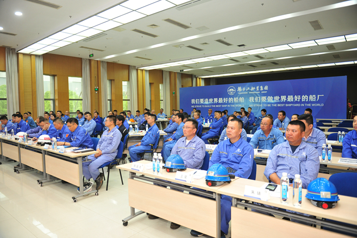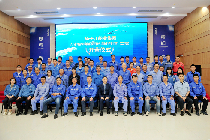 5月21日,揚子江船業(yè)集團人才培養續航項目第二期基本工班組長(cháng)特訓營(yíng)開(kāi)營(yíng)儀式在新?lián)P子行政大樓多功能廳順利舉行。新?lián)P子造船副總經(jīng)理倪榮,新?lián)P子造船總經(jīng)理助理兼集團綜合管理部部長(cháng)茆宏兆,揚子鑫福造船總經(jīng)理助理劉銀君,以及各子公司生產(chǎn)管理部、質(zhì)量管理部、綜合管理條線(xiàn)的相關(guān)領(lǐng)導、特訓營(yíng)所有學(xué)員、行動(dòng)導師,共計82人參加了開(kāi)營(yíng)儀式。