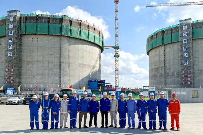 該項目單臺LNG儲罐拱頂重量達463噸,氣壓頂升作業(yè)屬超過(guò)一定規模的危險性較大的分部分項工程,技術(shù)難度與風(fēng)險管控要求極高。集團統籌資源,聯(lián)合中國五環(huán)工程有限公司、中國核工業(yè)第五建設有限公司,通過(guò)對氣頂升五大核心系統聯(lián)合檢查驗收和全流程精準調控,最終實(shí)現拱頂安全平穩就位,充分體現了集團在大型能源基礎設施建設領(lǐng)域的專(zhuān)業(yè)化管理能力和"造船+"管理體系優(yōu)勢。