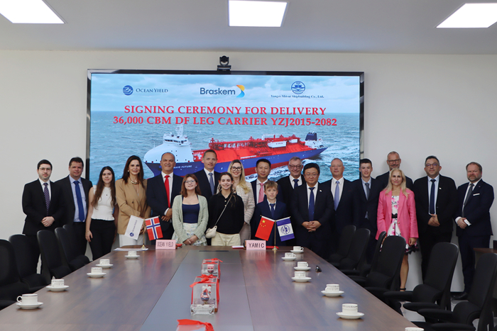 7月9日,Ocean Yield COO Andreas Reklev先生及我集團副總經(jīng)理兼揚子三井總經(jīng)理宋書(shū)明先生代表雙方簽署交船文件。