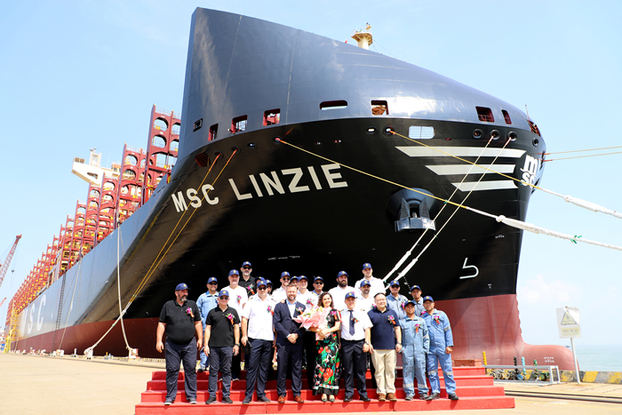 為MSC建造的第九艘LNG雙燃料16000TEU集裝箱船“MSC LINZIE”輪交付離廠(chǎng)