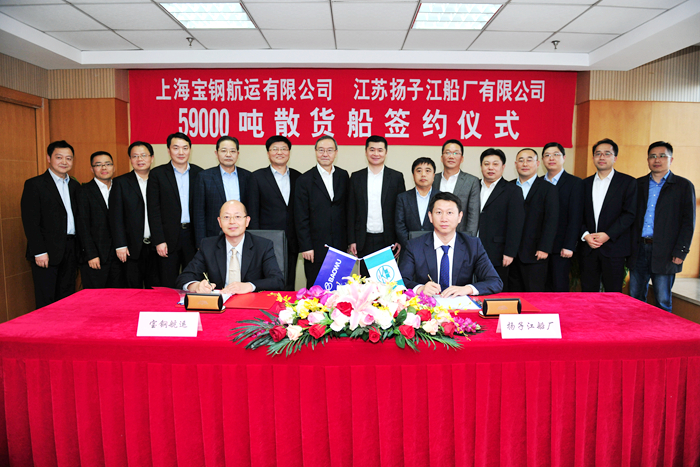 ▲11月13日下午,我集團下屬江蘇揚子江船廠(chǎng)有限公司與上海寶鋼航運有限公司簽署了2艘59000噸散貨船新造船合同。集團董事長(cháng)任樂(lè )天先生,寶鋼資源(國際)有限公司董事長(cháng)張典波先生,寶鋼資源(國際)有限公司總裁陸克從先生,我集團副總經(jīng)理宋書(shū)明先生,副總經(jīng)理杜成忠先生,以及來(lái)自寶鋼資源、寶武原料、寶鋼航運、中聯(lián)海運、上海船舶研究設計院、中國船級社等領(lǐng)導和重要嘉賓出席簽約儀式。