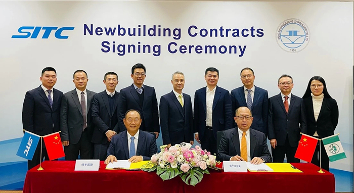 11月30日,雙方再次聚首上海,共同簽署1艘2700TEU集裝箱船和4艘2400TEU裝箱船的新造船訂造合同。集團董事長(cháng)任樂(lè )天先生,集團副總經(jīng)理張濤先生,海豐國際董事局副主席兼首席執行官楊現祥先生,海豐國際執行董事、海豐航運集團總裁薛明元先生,海豐航運集團副總裁肖森元先生等共同見(jiàn)證新訂單成功簽約。