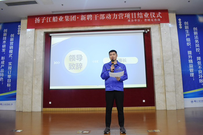 集團董事長(cháng)任樂(lè )天為學(xué)員們頒發(fā)了結業(yè)證書(shū),他恭喜全體49名學(xué)員順利畢業(yè),并指出,本期培訓班的學(xué)員都是揚子江船業(yè)未來(lái)的中流砥柱,通過(guò)半年系統的學(xué)習,看到了大家能運用所學(xué)的知識武裝自己,能夠做到對外獨擋一面,對內有效溝通,達到了公司舉辦此次培訓課程的目的。任董對學(xué)員們的付出表示肯定,同時(shí)對新聘干部們也提出了更高的要求,管理干部們要做到“德才兼備”,首先是德的養成,其次才是才的提升,在平時(shí)的生活工作中做到公平、公正、公開(kāi),在管理中要敢擔大任、敢拔頭籌,用自己的正能量影響自己的團隊。